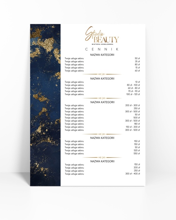 Cennik usług granatowo-złote tło, A4 lub A3 (CN9)