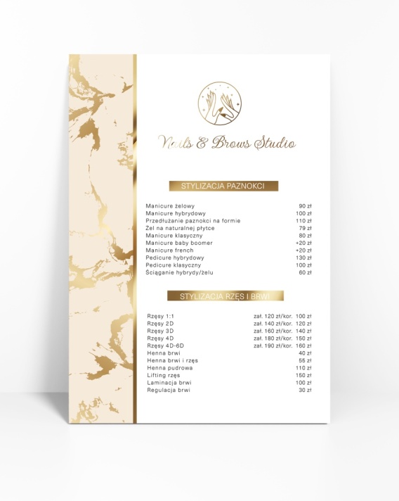 Cennik usług z beżowo-złotym marmurkiem, A4 lub A3 (CN29)